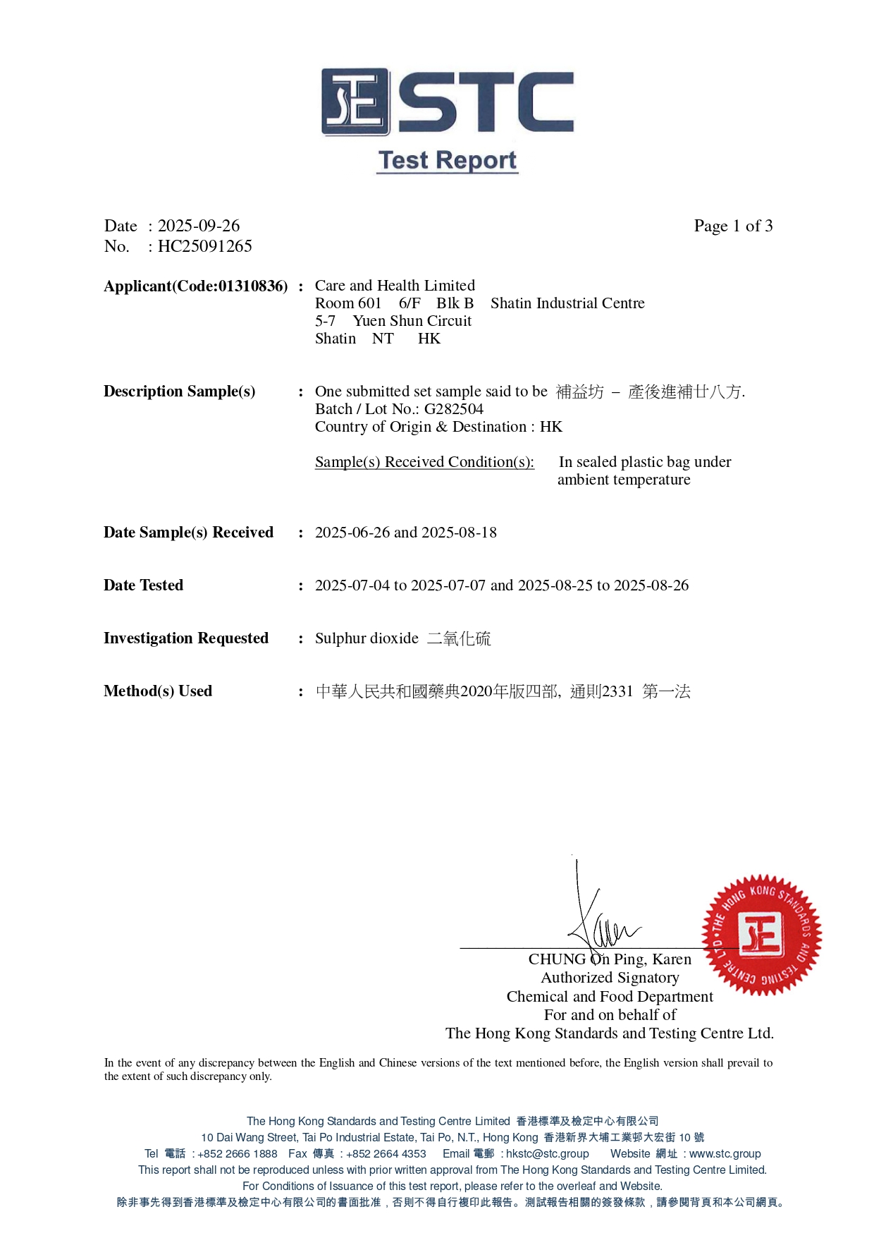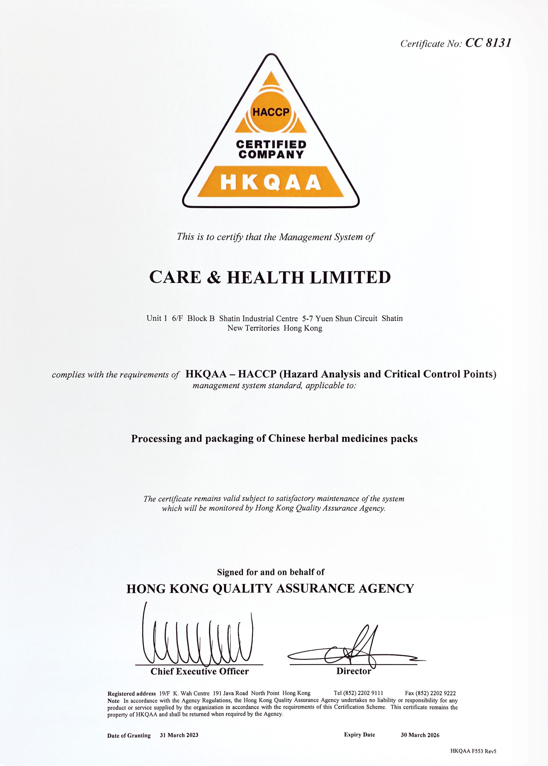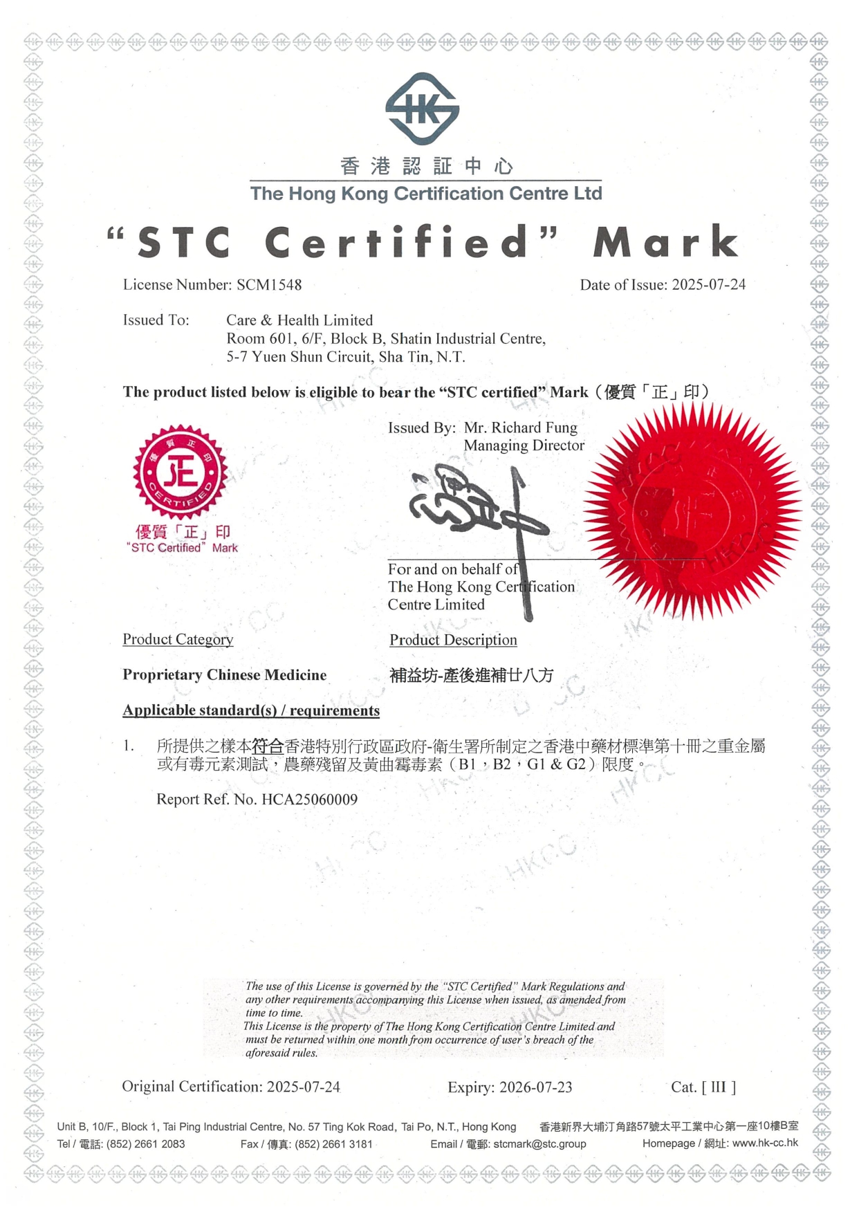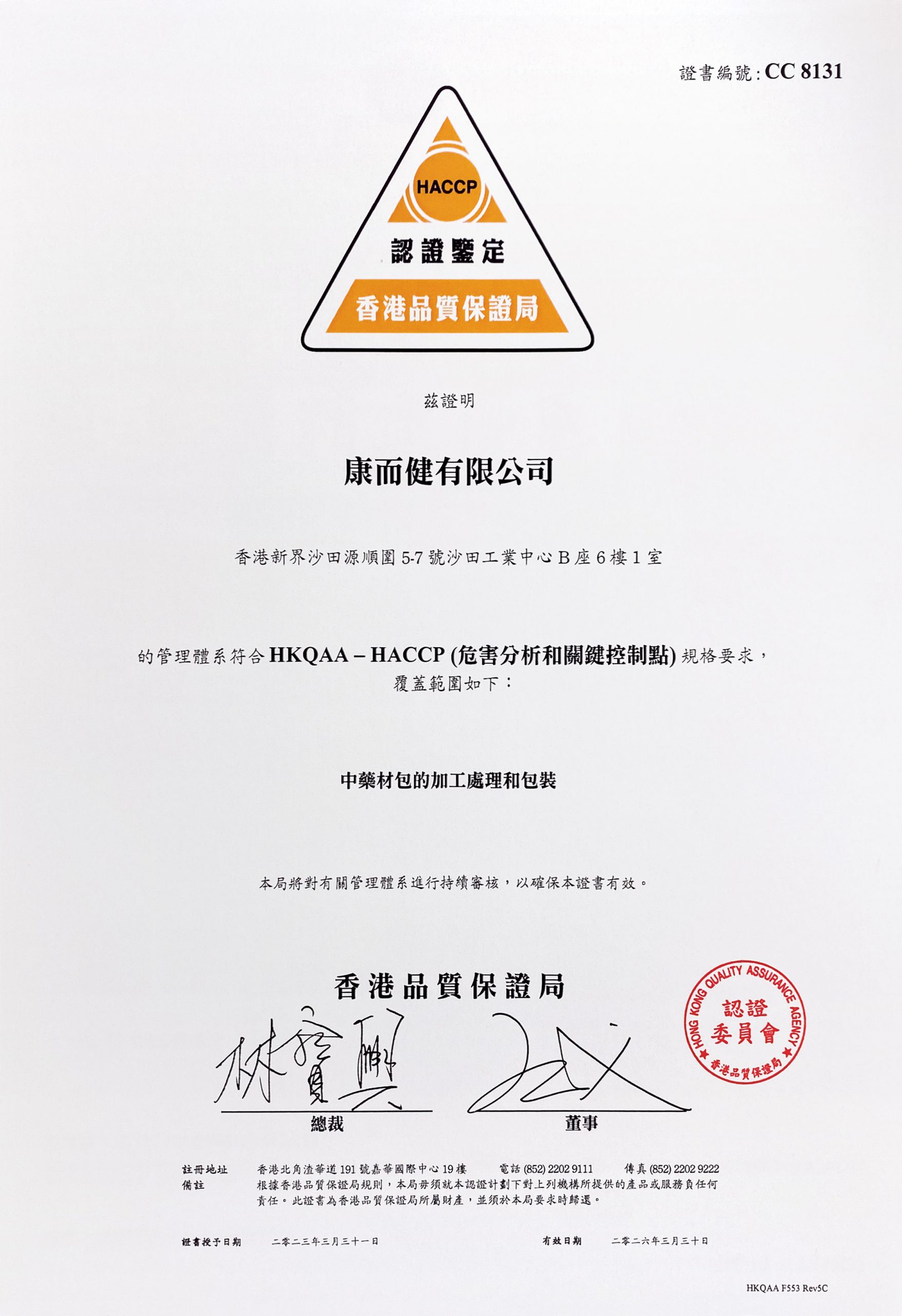 香港第一個中藥材通過香港標準及檢定中心測試,獲頒香港優質正印及 ISO,產品通過低硫磺、農藥殘餘、重金屬及黃麴黴素等符合香港及國際標準,絕對安全!